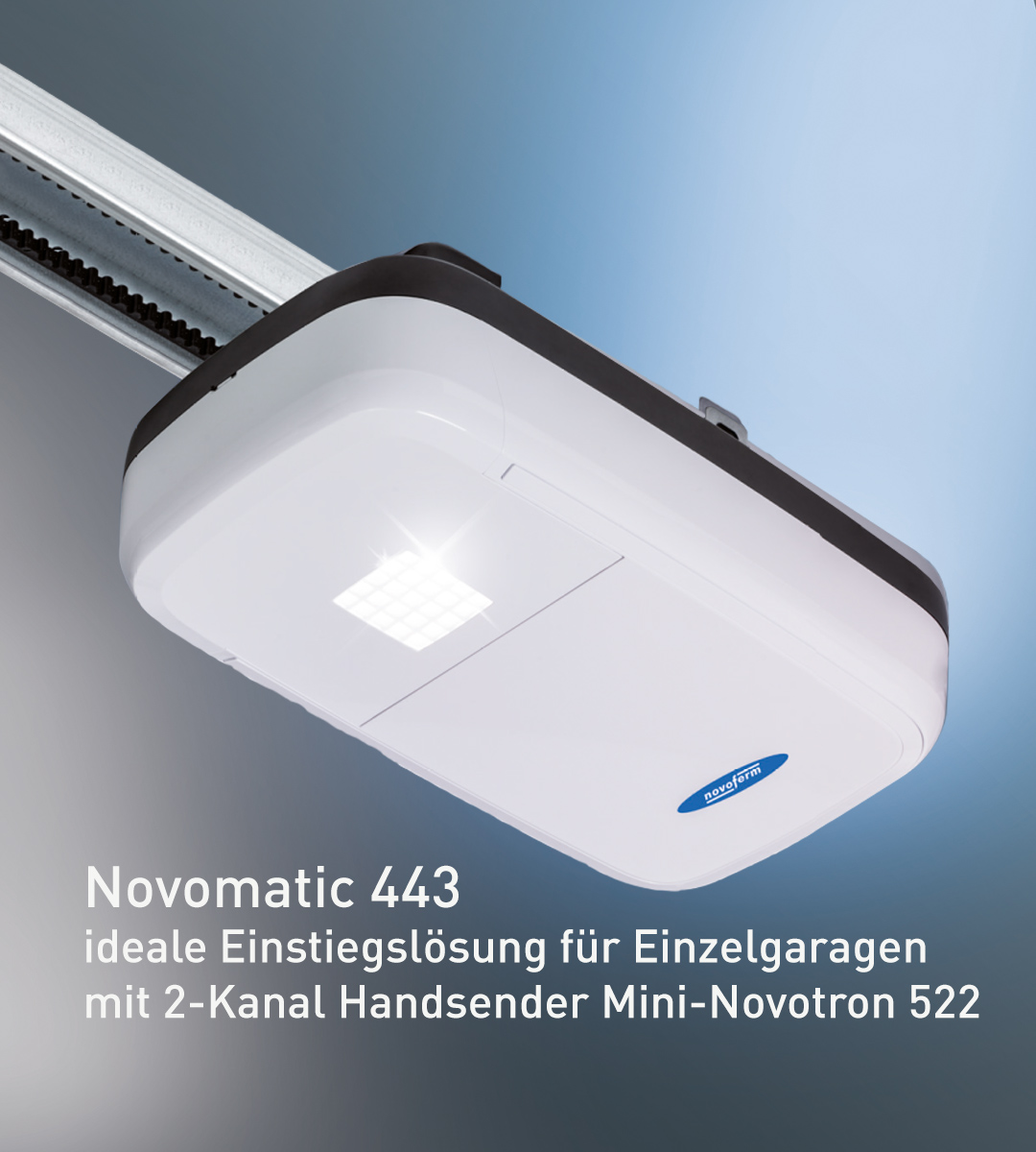 Nowe napędy do bram garażowych Novomatic 443 oraz Novomatic Speed typ 573 S odświeżają linię produktową Novomatic. Wyróżniają się jasnym i energooszczędnym oświetleniem LED, większą liczbą inteligentnych możliwości podłączeń oraz nowoczesnym, innowacyjnym designem. Nowe napędy Novomatic są przeznaczone do bram segmentowych i uchylnych marki Novoferm, ale mogą być również stosowane do modernizacji bram innych producentów. Montowane oszczędnie pod sufitem, dzięki nowoczesnym obudowom doskonale prezentują się w każdej garażowej przestrzeni.