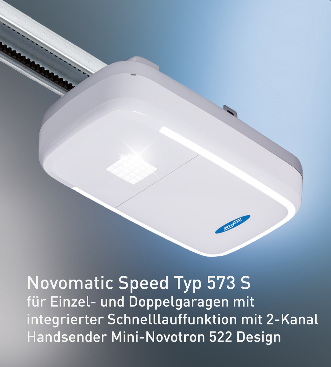 Dopracowana technologia zasługuje na nowoczesną obudowę. Napędy do bram garażowych Novomatic i Novomatic Speed łączą nowoczesną technikę z najwyższą efektywnością energetyczną i wyróżniają się nowym designem, energooszczędnym oświetleniem LED, szybszą prędkością działania (Novomatic Speed) oraz dodatkowymi opcjami ustawień.