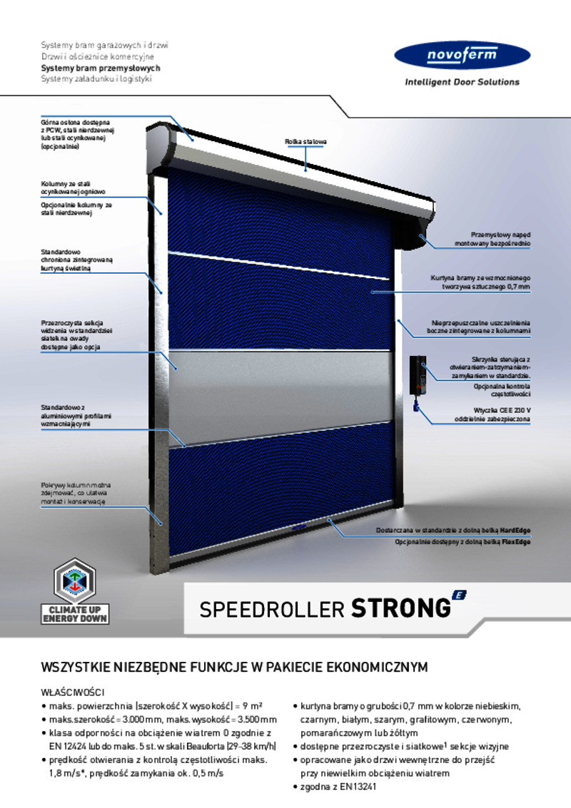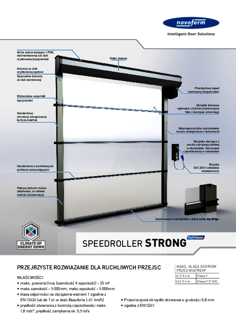 SPEEDROLLER STRONG-E to dobre rozwiązanie dla przejść o powierzchni do 9 m2 i umiarkowanej sile wiatru.