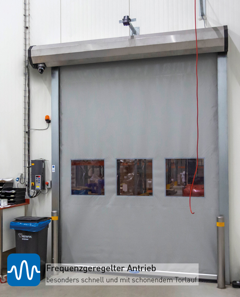 Dzięki szybkiemu napędowi sterowanemu częstotliwością i inteligentnemu sterowaniu, na przykład za pomocą pętli indukcyjnej lub linki, brama otwiera się tak szybko, że wózek widłowy może przejechać praktycznie bez przeszkód, jeśli ścieżka jest wyraźnie widoczna.