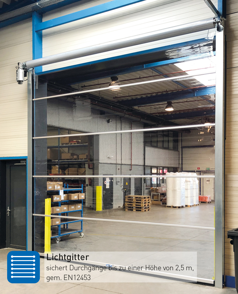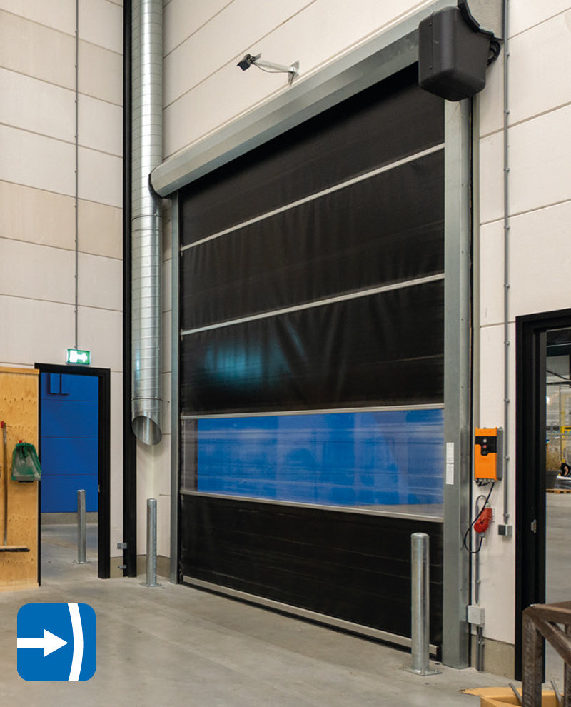 SPEEDROLLER STRONG-FULLVISION to przezroczysta wersja naszej standardowej bramy szybkobieżnej do zastosowań wewnętrznych: