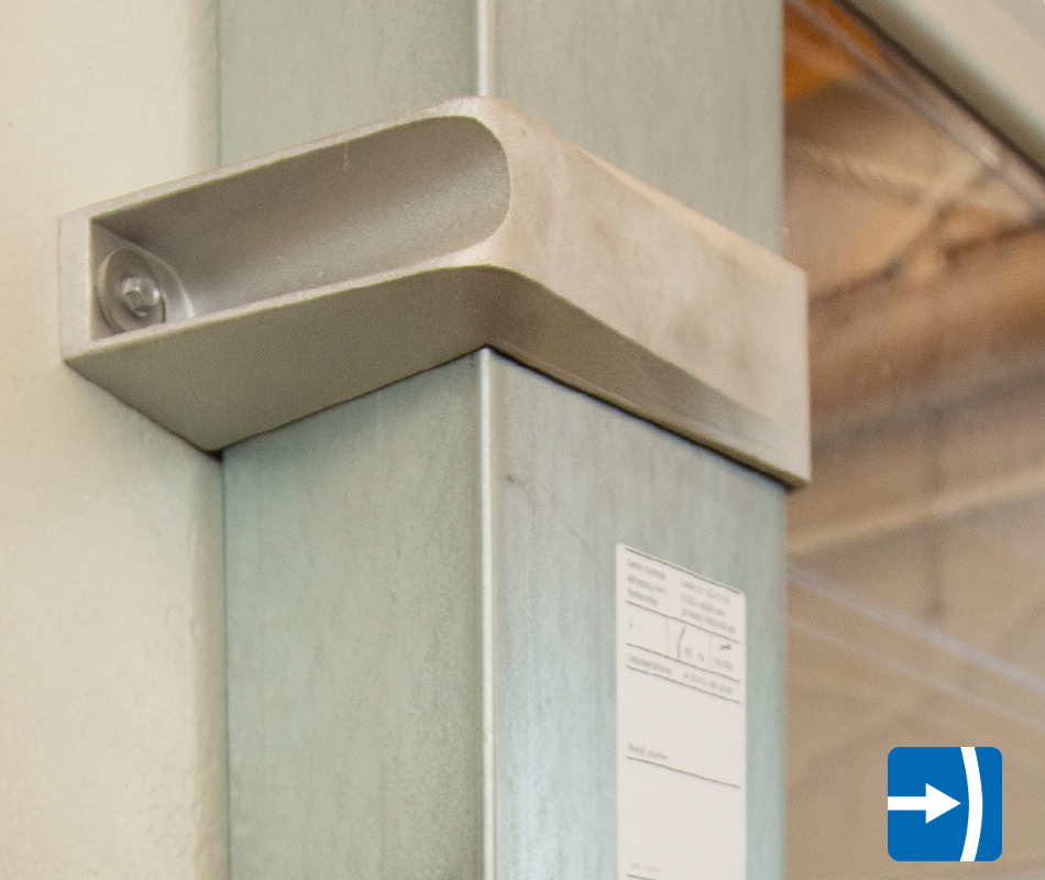 Po kolizji z bramą kurtyna bramy automatycznie powraca do szyny prowadzącej. Praktycznie eliminuje to zakłócenia procesu produkcyjnego.