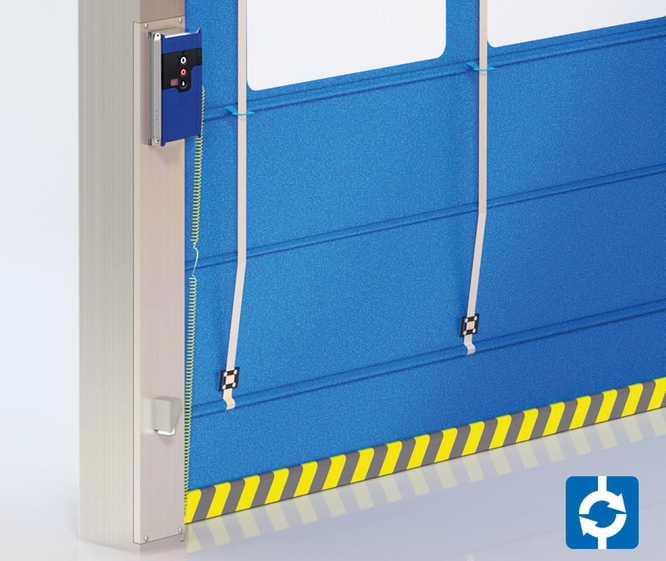 Po kolizji z bramą kurtyna bramy automatycznie powraca do szyny prowadzącej. Praktycznie eliminuje to zakłócenia procesu produkcyjnego.