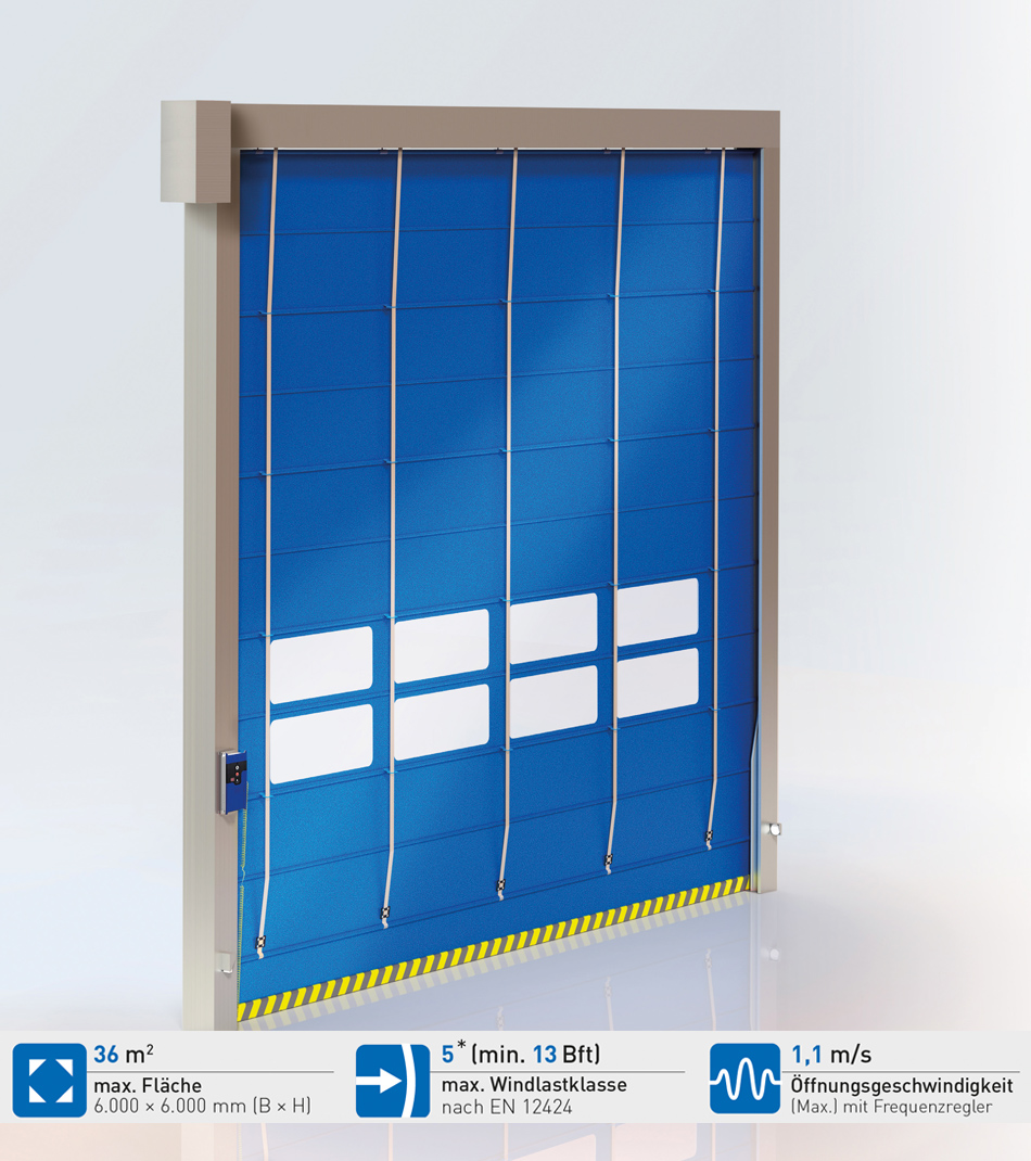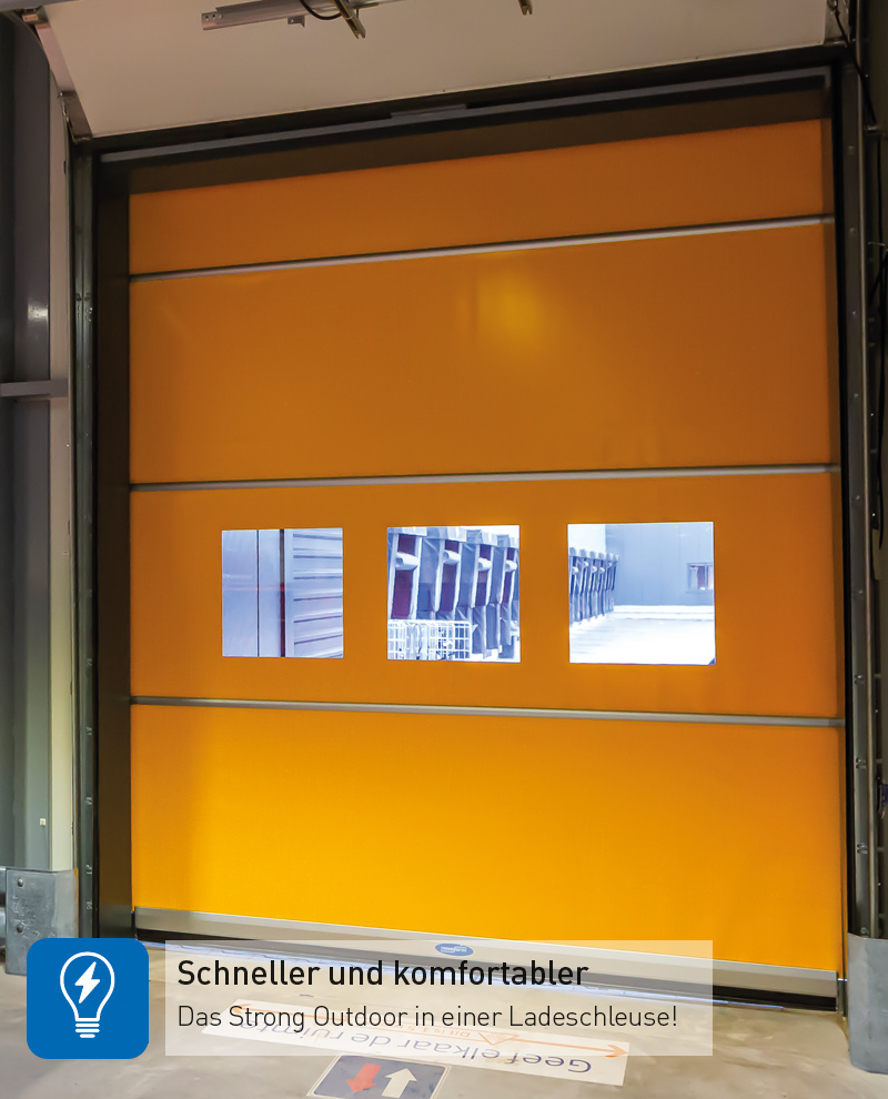 Wymaga to dużej i szybkiej bramy SpeedRoller, która utrzymuje przyjemny klimat w pomieszczeniu, jest łatwa w użyciu, nie utrudnia ruchu i działa sprawnie przez wiele lat. Strong Outdoor został opracowany właśnie z myślą o takich przypadkach. Dzięki sprytnemu systemowi napinania, kurtyna bramy zawsze pozostaje optymalnie napięta, nawet przy bardzo silnym wietrze. Wszystkie istotne części zostały zaprojektowane tak, aby były szczególnie stabilne i zapewniały wiele lat bezproblemowej pracy w każdych warunkach.
