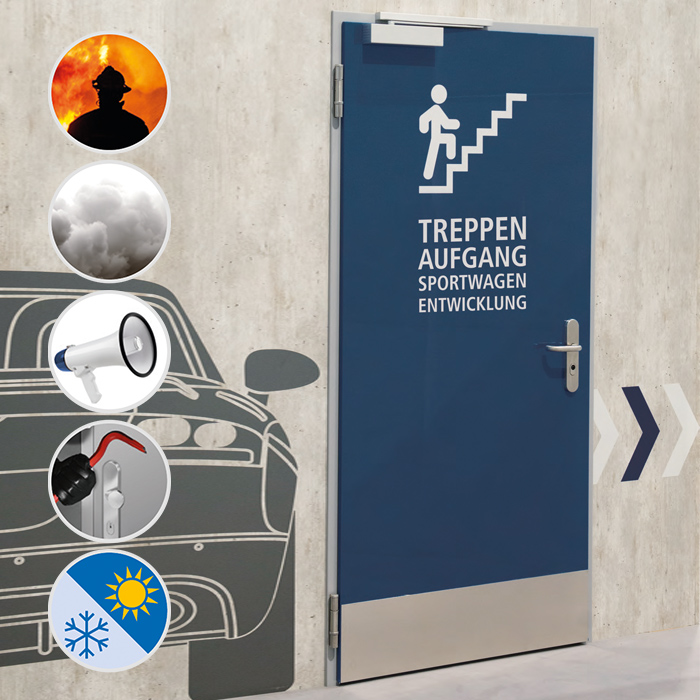 Drzwi stalowe NovoPorta Premio z wysokiej jakości grubą przylgą są dostępne w wersji przeciwpożarowej (do EI 60), dymoszczelnej, bezpiecznej (do RC 4), dźwiękoszczelnej (do R W = 53 dB), , a nawet kuloodpornej (FB 4, VPAM 6) – zapewniając jednolity wygląd drzwi w całym budynku.