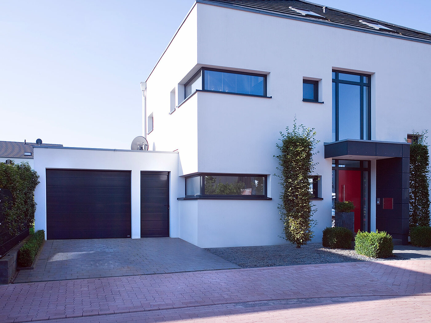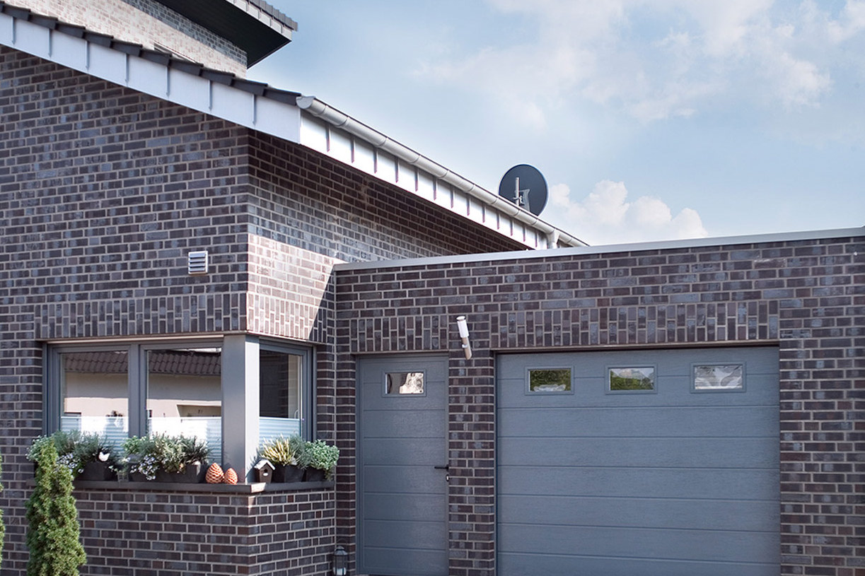 With a sectional door, the garage door is located to the right or left of the garage door. However, it is also possible to install a sectional door with a wicket door or with a double-leaf side door. With an up-and-over door, the side door is integrated into the up-and-over door or is located next to the up-and-over door. In the case of a roller shutter door, a side door with the same appearance ensures a harmonious look.