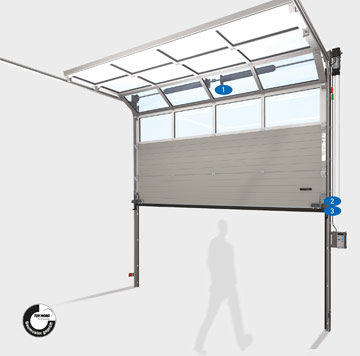 Bramy segmentowe podwieszone są na elastycznych linkach, co umożliwia ich podniesienie, gdy nie są zablokowane. Urządzenie przeciwwyważeniowe zaprojektowane specjalnie dla lekkich, elektrycznie otwieranych bram, uniemożliwia uniesienie bramy. Bramy otwierane ręcznie zostały wyposażone w specjalny sprężynowy skobel (w standardzie). Aby zamontować urządzenie przeciwyważeniowe wzdłuż prowadnic, wymagane jest zachowanie dodatkowych 50 mm przestrzeni.
