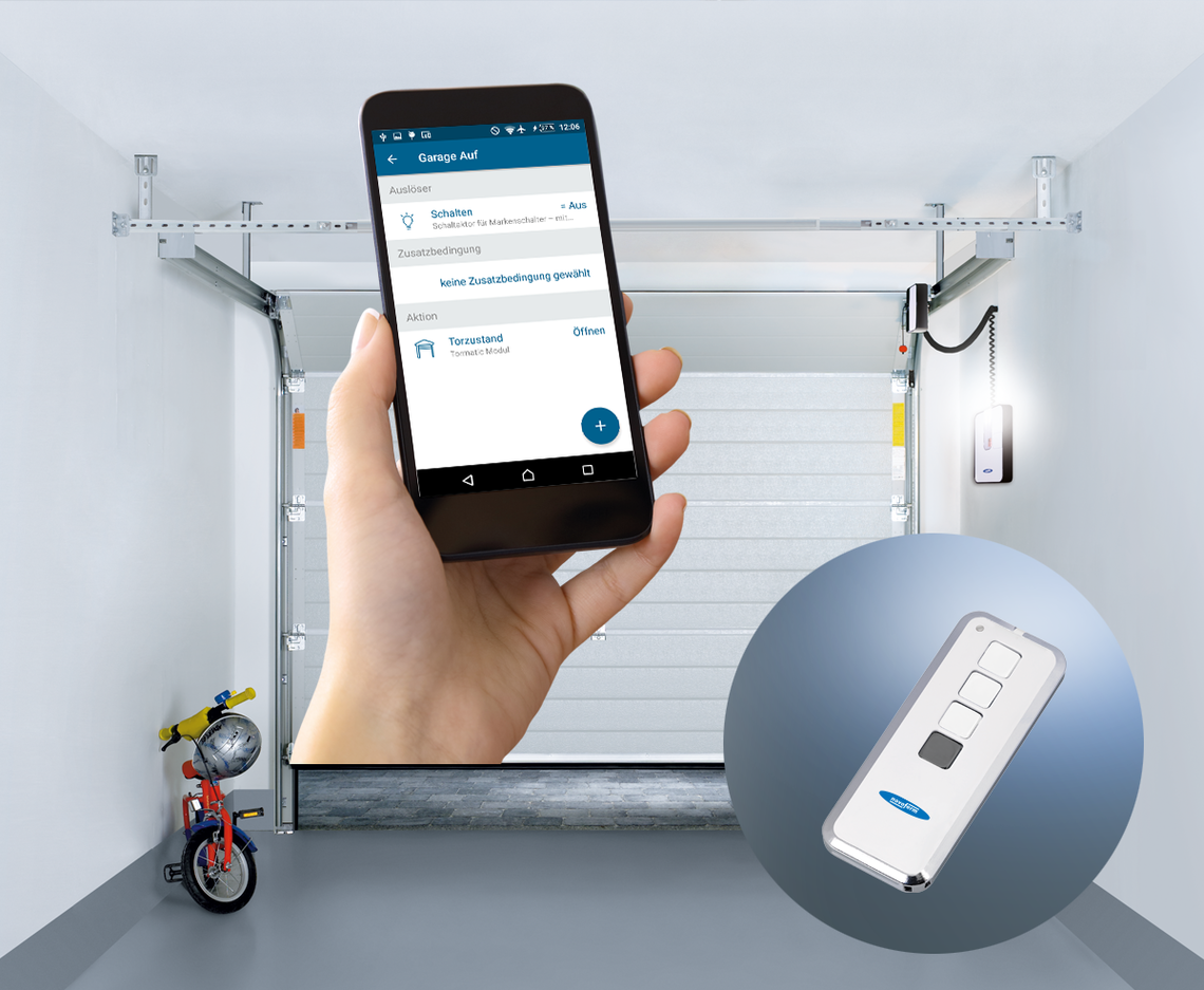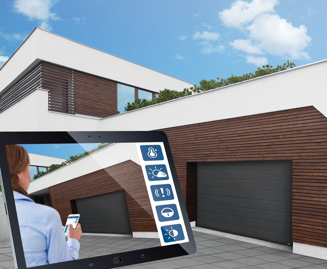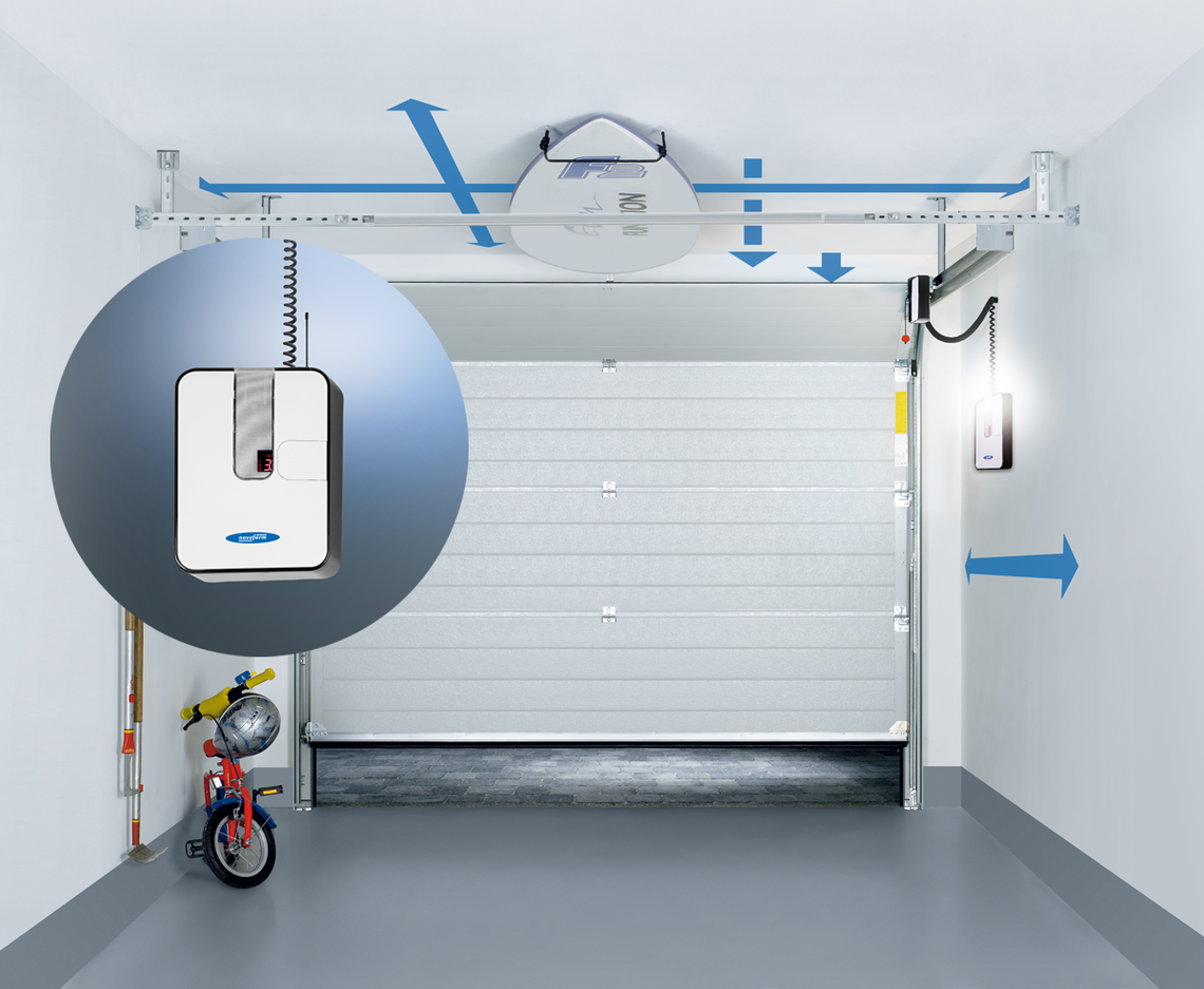 •funkcja wentylacji garażu – brama otwarta na wys. ok. 10 cm, po 60 minutach zamyka się automatycznie, chyba że wcześniej zostanie zamknięta za pomocą pilota, smartfonu itp.