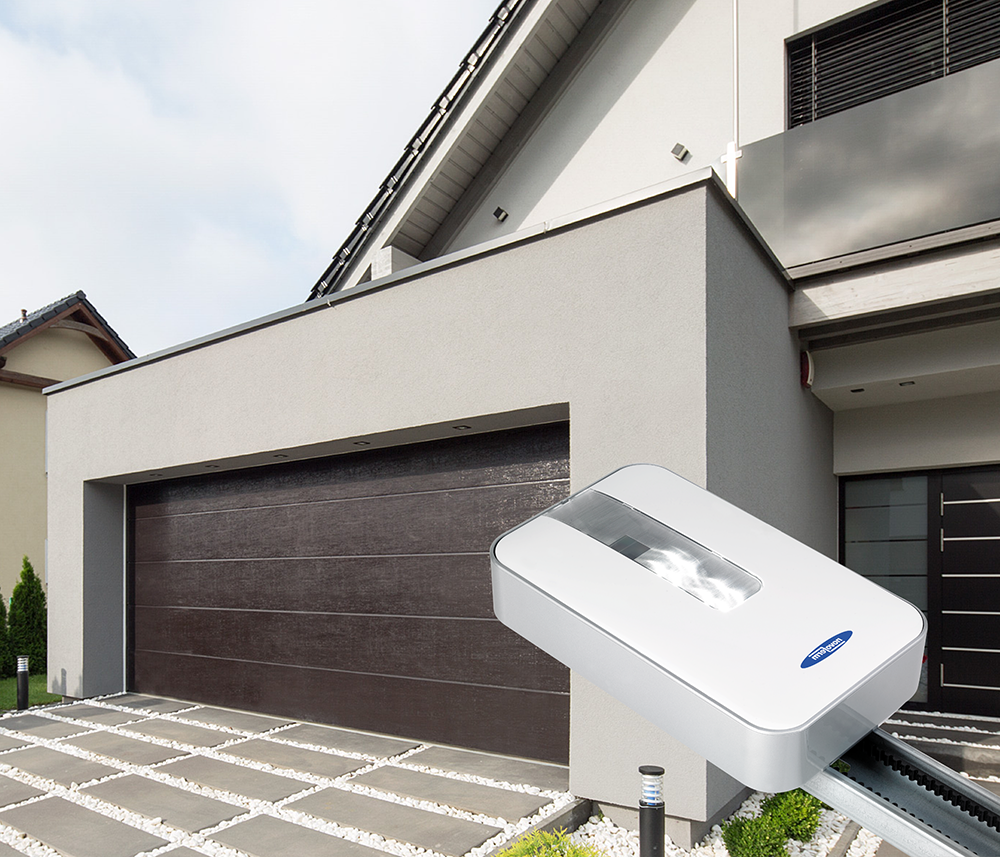 •elastyczna obsługa – napęd można obsługiwać za pomocą pilota, jak również dzięki zamontowanym na ścianie garażu przyciskom, przy pomocy przełącznika kluczykowego lub panelu kodowego ze sterowaniem radiowym lub bez jakiegokolwiek okablowania (niższe koszty eksploatacji)