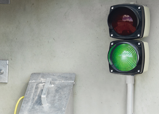 Sygnalizacja świetlna informuje zarówno kierowców na zewnątrz, jak i personel załadunkowy wewnątrz, czy miejsce załadunku jest gotowe do dokowania lub czy można rozpocząć załadunek. Najczęściej stosuje się sygnalizację świetlną z dwoma sygnalizatorami (czerwonym i zielonym). Możliwe jest również zastosowanie czerwonego i zielonego sygnału w jednym sygnalizatorze.