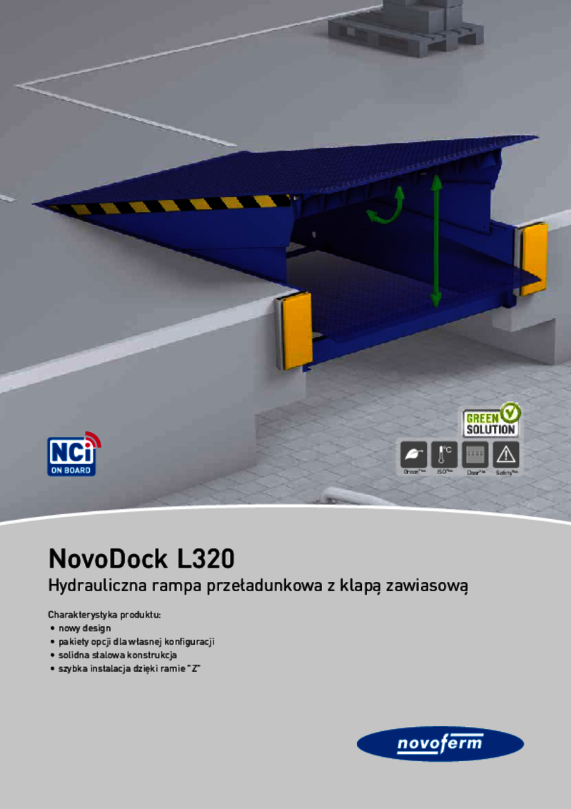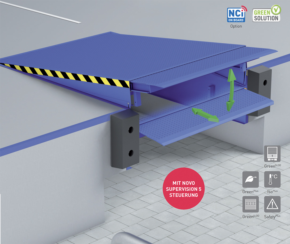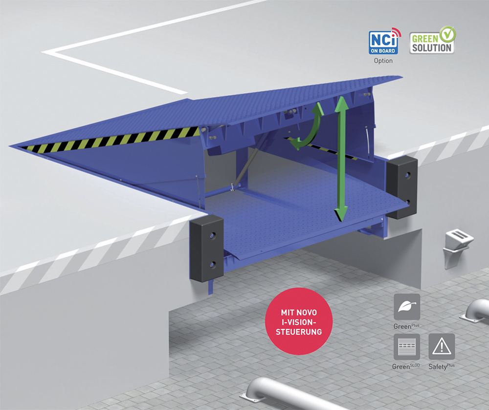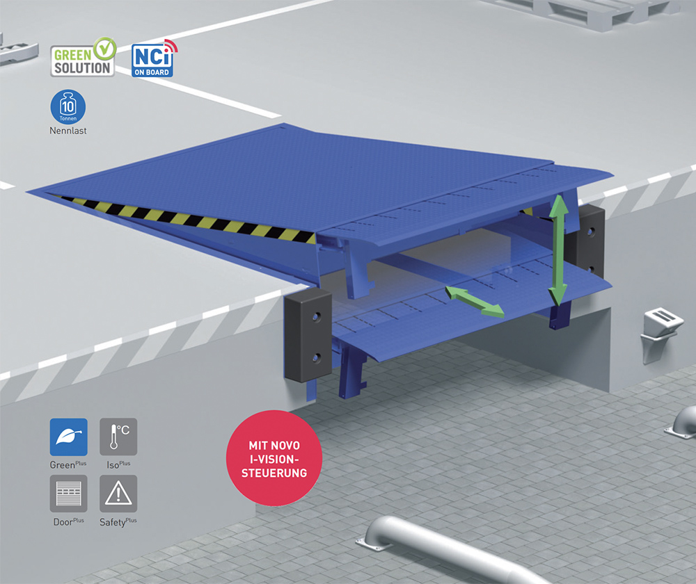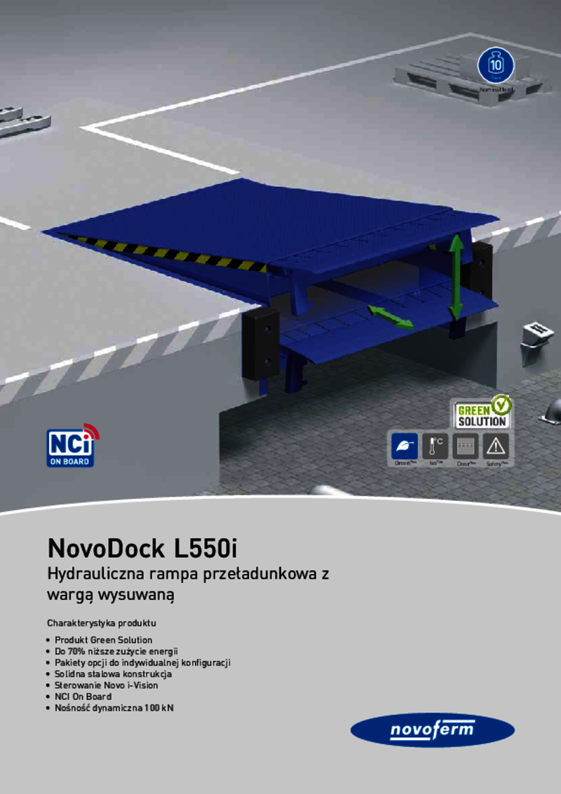 NovoDock L550i został zaprojektowany specjalnie do transportu cięższych ładunków. Hydrauliczny pomost przeładunkowy z wargą wysuwną łączy w sobie solidną konstrukcję stalową z najnowocześniejszą technologią sterowania, umożliwiając tym samym wydajny przeładunek. Podobnie jak w przypadku wszystkich produktów z pakietem GreenPlus, zastosowano materiały spełniające aktualne normy środowiskowe, które dzięki wyjątkowo niskim wymaganiom energetycznym w znacznym stopniu przyczyniają się do redukcji emisji CO2.