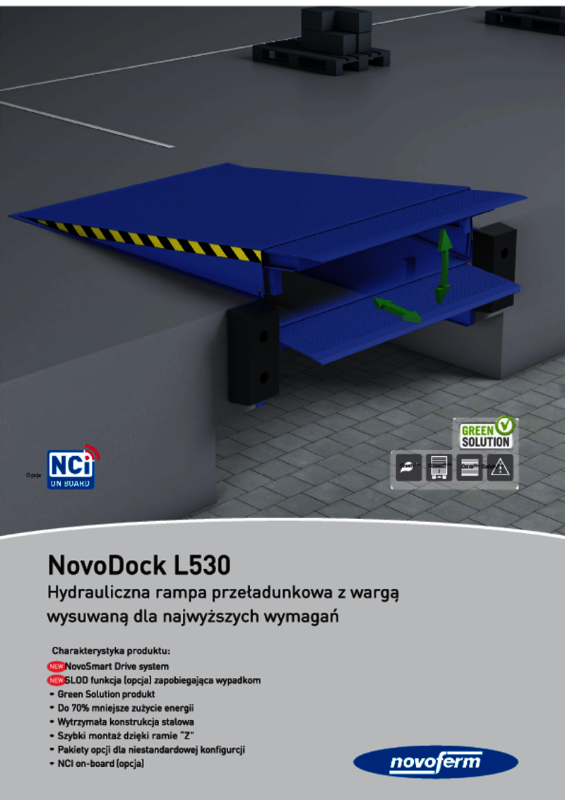 NovoDock L530 jest zoptymalizowany pod kątem zwiększonych wymagań rynkowych i łączy w sobie zalety różnych systemów. Hydrauliczny pomost przeładunkowy z wargą wysuwną jest szczególnie wytrzymały i umożliwia wydajny przeładunek dzięki najnowocześniejszej technologii sterowania.