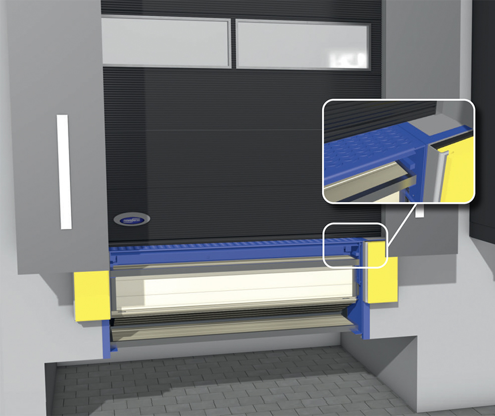 | Siły uderzeniowe od ciężarówki są przenoszone na płytę posadzki | Opcjonalny pakiet DoorPLUS |